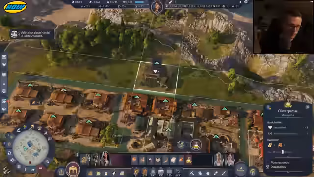 00:40:28Der Streamer konzentriert sich auf den Aufbau von Infrastruktur und Versorgungseinrichtungen. Er zeigt, wie er seine Häuser aufwertet und erwähnt, dass er bald Bedürfnisse wie Brot, Haferbrei und Tuniken erfüllen muss. Er baut Spinnereien für Tuniken und Schafe für Pilai. Er erklärt auch, wie er die Arbeitskraft der Liberti-Häuse nutzt und wie er Überproduktion verhindern kann, indem er Überschüsse verkauft.