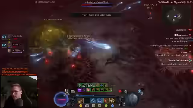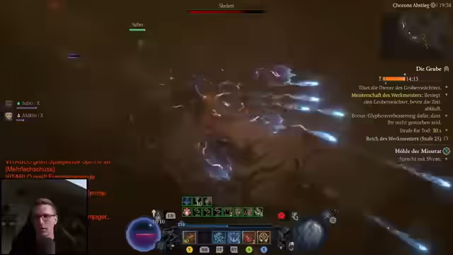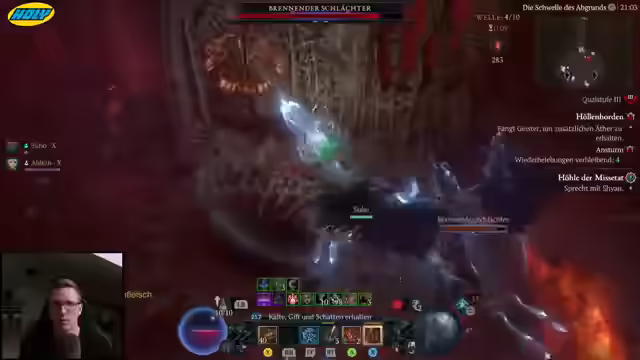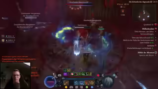 Der Diablo IV-Stream ist geprägt von Build-Diskussionen, technischen Problemen und Farmstrategien. Nach anfänglichen Schwierigkeiten mit der Kamera und Diskussionen über Intro-Musik, konzentriert sich der Streamer auf Build-Anpassungen, insbesondere im Hinblick auf Zerschmetternde Hand. Es werden Glyphen gefarmt, Amulette verglichen und verschiedene Builds getestet. Der Streamer freut sich über Zuschauer-Feedback und experimentiert mit verschiedenen Farmstrategien, um in Qual 3 und 4 erfolgreich zu sein. Auch die Legalität von Makros wird thematisiert.