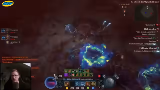 00:44:16Die Suche nach effektiver Ausrüstung geht weiter. Der Streamer farmt Glyphen und Härtungsrezepte, konzentriert sich aber auf das Finden einer passenden 'Chaos-Rüstung' für seinen Spiritborn, um Build-bedingungen zu erfüllen. Er überprüft auch seine Glyphenwahl und stellt fest, dass einige Fähigkeiten, wie 'Sturmfeder', nicht als 'gewirkte Fertigkeit' gelten und daher bestimmte Boni nicht auslösen. Die Freude über das gefundene Chaos-Item wird durch die enttäuschende Äther-Ausbeute in der Arena getrübt.