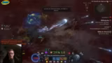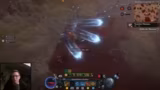 01:33:18Der Streamer beobachtet eine Ätherwelle mit vier Massenmonstern und analysiert deren Verhalten. Er stellt fest, dass er durch mehr Schaden deutlich mehr Äther hätte generieren können, da die Monster zu lange überleben. Obwohl er ein Skill aktiviert hat, der das erneute Bilden der Monster nach ihrem Tod ermöglichen soll, funktioniert es bei diesen Exemplaren nicht, was ihn frustriert. Dennoch erreicht er den Meilenstein von 1000 Äther, was es ihm ermöglicht, Bartok zu beschwören und die Truhe zu öffnen.