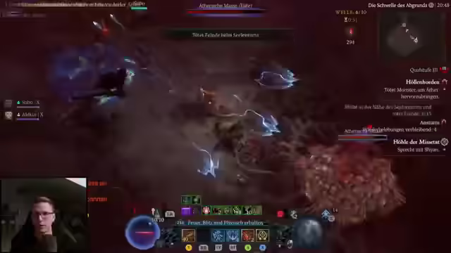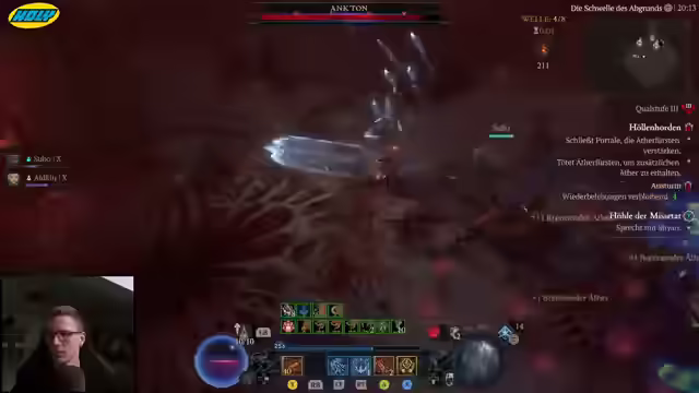 00:28:33Es wird ein Zuschauer gefragt, ob man jemanden kennt, der bestimmte Items kaufen möchte. Es wird festgestellt, dass es bei der Hellheit zu Lags kommt und man nicht mehr geradeaus entrinnen kann. Dieses Problem bestand auch schon in den letzten Seasons. Es wird die Blutjungfrau gefarmt. Es wird überlegt, ob Crossplay deaktiviert werden muss, wenn man Evade spielt, da es wieder zu legen scheint. Es wird über die Dauer gesprochen, bis Gegner auftauchen und dass ein Härtungsrezept gedroppt ist. Es wird über automatisches Zielen und die Ursache der Lags diskutiert. Es wird überlegt, wie man mit einem Twink am schnellsten vorankommt und Härtungsrezepte farmt. Es wird eine Arena auf Qual 3 ausprobiert und festgestellt, dass der Schaden noch nicht so hoch ist. Es wird überlegt, ein paar Items zu härten und vermachte Items anzuziehen. Es wird über den Band des ersten Atems gesprochen und verschiedene Ringe und Amulette verglichen. Es wird nach einem Amulett gesucht, das für den Build in Frage kommt. Es wird festgestellt, dass das eine wichtige Rezept für Sturmfedern bereits gefunden wurde. Es werden Sturmfedern gerollt und Amulette und Ringe gegambelt. Es wird ein Aspekt für Sturmfeder aufhebeln gefunden und angelegt. Es wird nach fehlenden Aspekten gesucht und die Chaosvorteile gelevelt. Es wird überlegt, welches Elixier man bei Entrinnen nimmt und die Glyphe Entladen eingesetzt.