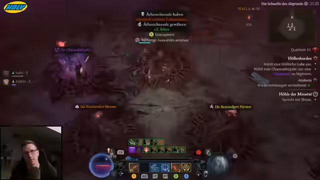 00:32:32Um für die Season-Herausforderung weiterzukommen, wechselt der Streamer zur Höllenhorde auf Qualitätsstufe 3. Sein Ziel ist die Farm von Ätherpunkten, die er durch die Tötung von Gegnern in der Arena erhält. Er entscheidet sich für eine spezifische Taktik mit dem 'Massen'-Passiv, die zu Rundenbeginn automatisch zusätzliche 'Ätherische Massen' erzeugen soll, um die Ausbeute zu maximieren. Diese Taktik erweist sich jedoch als schwierig umzusetzen, da die Startmassen nicht zuverlässig erscheinen.