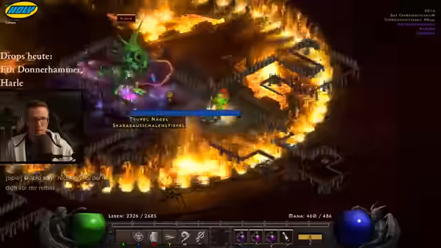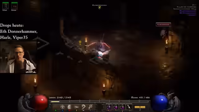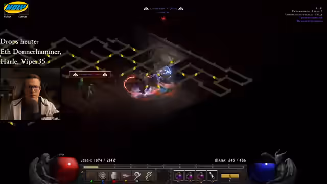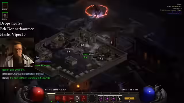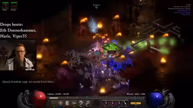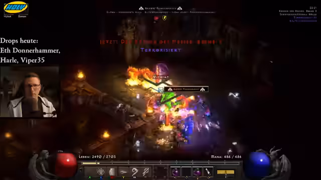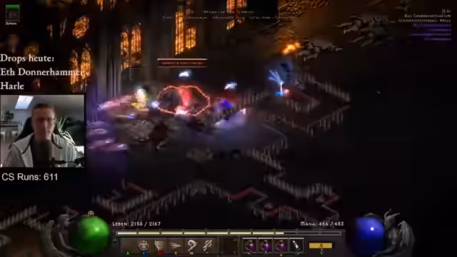 02:02:47Der Streamer beginnt mit einem Diablo 2 Marathon, nachdem sein Auto kaputt ist und er sich Essen bestellen muss. Er erwähnt, dass er heute an einem Asia-Event teilnimmt und daher früher gestreamt hat. Sein Fokus liegt auf dem Farming in Terrorzonen, insbesondere im Schinder-Dungeon, wo er nach Items mit viel AOE Schaden sucht. Bei Waffenauswahl bevorzugt er Optionen wie Ariochs Nadel oder BOTD für hohe Schadens- und Leech-Boni und gibt zu, dass das Farming ohne Enigma erschwerend ist.