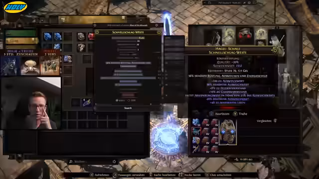 01:57:11Der Streamer erwähnt den bevorstehenden Raid mit dem User 'Fab' und klärt, dass einmaliger Umzug von Solo-Schatzkammern in den Handel auch in Path of Exile 2 möglich ist, aber alle Items des Charakters verliert. Der Lootfilter wird überarbeitet, um die Menüführung zu verbessern und das unaufgeräumte Inventar bei der Kartenexploration zu reduzieren. Der Fokus verlagert sich aufs Crafting eines Helms mit T1 Energieschild und T1 Magic Find, wobei auf die hohe Drop-Wahrscheinlichkeit von nutzlosen Stats wie Intelligenz hingewiesen wird.