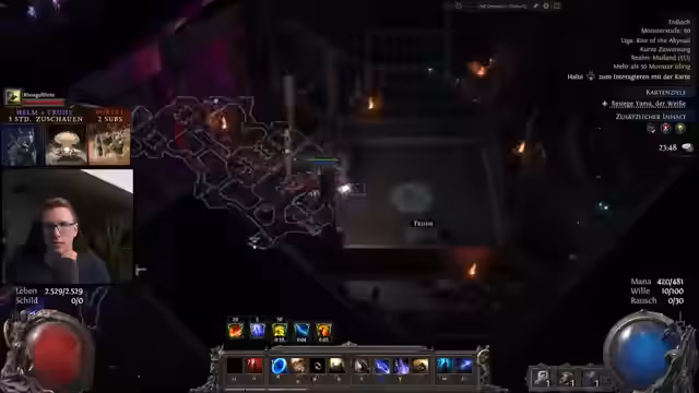 05:11:36Es werden drei 7er Tablets in die Map eingesetzt. Ein Raid mit 152 Leuten wird erwähnt. Es werden zwei Zitadellen und ein Turm entdeckt. Premium-Tablets werden eingesetzt, um die Menge der Gegenstände in den Maps zu erhöhen. Es wird die Last Epoch Community gelobt. Oberwolf 2 Overlay wird empfohlen, um Ingame Preise zu checken. Abgründiges Echo führt fast zum Tod. Die letzten Maps des Streams lohnen sich nochmal richtig. Es wird überlegt, mit einer Zauberin in Last Epoch anzufangen. Es wird erklärt, dass es erstmal keine neuen Builds in PoE geplant sind. Die PoE Season geht noch vier Monate. Es wird nach Beams im Fog gefragt. Es wird über eine Fiole des heiligen Wassers diskutiert. Eine Hybridrüstung mit T1 Chaos Resi wird gefunden. Es wird ein Greater Exalt auf eine Rüstung angewendet.