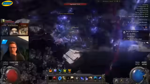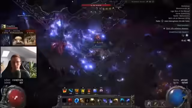 05:15:01Nachdem die letzten Maps erneut hohe Erträge, darunter wertvolle Fragmente und Exalted Orbs, eingebracht haben, wird das Gameplay fortgesetzt. Der Streamer erwähnt, dass die Abgrund-Maps (Abyss) sich inzwischen sehr lohnen und gibt eine Empfehlung für ein Overlay-Tool, um Ingame-Preise zu überprüfen. Anschließend kündigt er an, nach der Stream-Pause mit einem Zauberer-Build aufzusteigen, da er den aktuellen Tinkermanagement-Aspekt des Streams zu anstrengend findet.