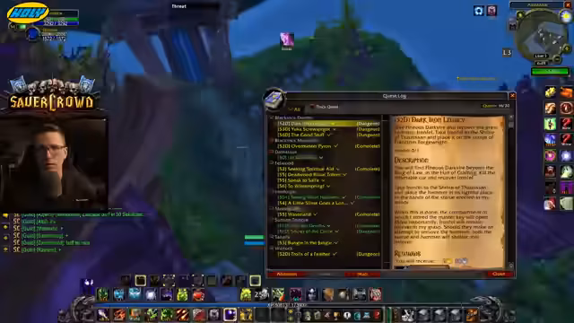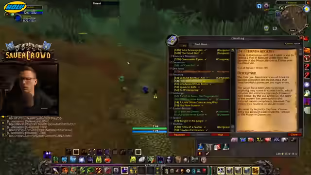 03:48:17Der Streamer prüft seinen Quest-Fortschritt für den Sunken Temple. Er stellt fest, dass er die Vorquest für eine spezielle Belohnung (Rhapsody Cocktail) nicht gemacht hat. Er bewertet diese Quest als sinnlos, da sie nur Erfahrungspunkte bringt, die er auch anderswo einfangen kann. Er konzentriert sich stattdessen darauf, andere Quests abzugeben, um Platz im Inventar zu schaffen.
