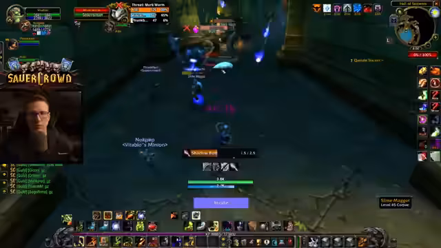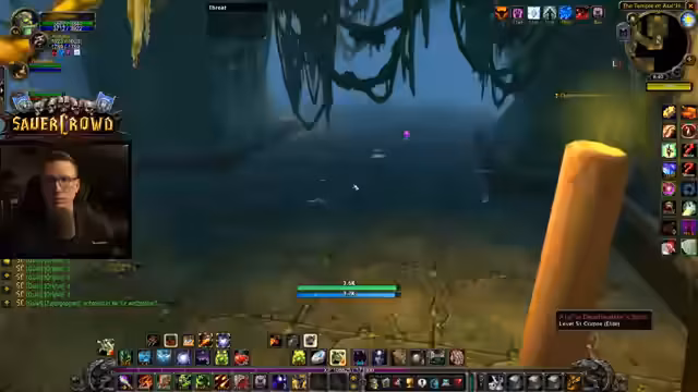 05:53:41Im weiteren Verlauf des Dungeons konzentriert sich die Gruppe darauf, größere Packs von Gegnern zu bewältigen. Der Streamer nutzt Sleep, um besonders gefährliche Gegner wie Caster zu kontrollieren und nur die Nahkämpfer als Priorität zu behandeln. Es wird erwähnt, dass die Raumgestaltung Herausforderungen mit sich bringt, wie etwa einem tödlichen Loch in der Mitte, vor dem man sich in AOE-Situationen hüten muss. Drachen in den Räumen werden an die Wand gedreht, um ihren Bereichsschaden von der Gruppe fernzuhalten.