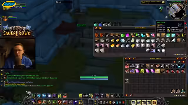 10:41:01In der Stadt Gadgetzan findet er einen Meister-Ingenieur und das Rezept für die grüne Linse. An diesem Abend ist es ihm jedoch nicht möglich, das Item herzustellen, da ihm ein Aquamarin fehlt. Trotz intensiver Suche im Gilden-Chat und direkter Anfragen meldet sich niemand mit dem benötigten Edelstein. Frustriiert, aber motiviert für den nächsten Tag, beendet der Stream, nachdem er erwähnt, dass ein Gildenmitglied kurz vor Level 60 steht.