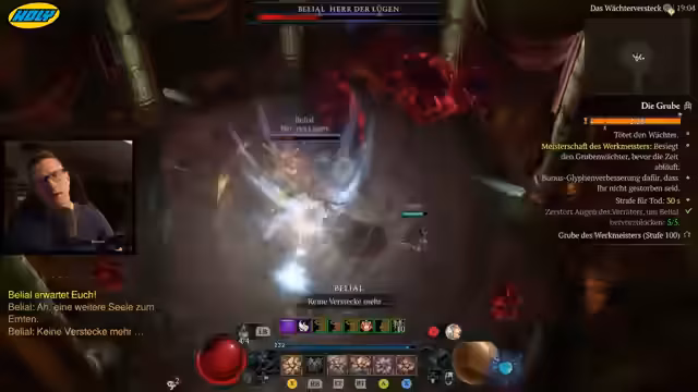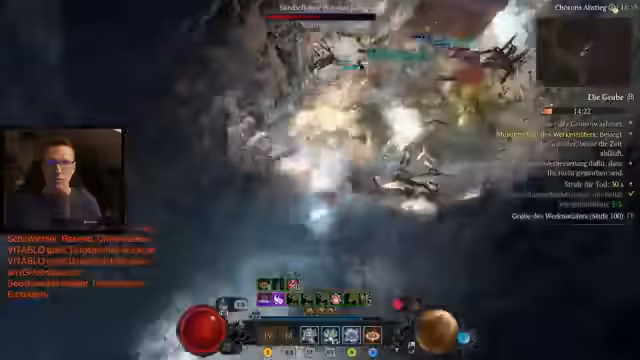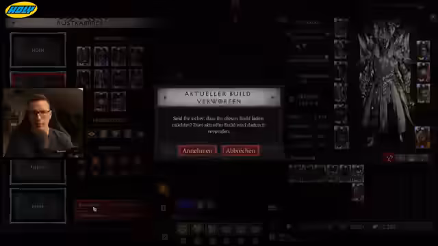 02:39:54Im Stream wird der Auradin-Build von Screamheart getestet und mit Flügelschlag verglichen. Der Streamer stellt fest, dass Auradin aktuell nicht optimal ist, da es zu squishy für Endgame-Inhalte wie Qual 2 ist. Stattdessen wird zu Flügelschlag gewechselt, da dieser mehr Schaden bietet. Es folgt eine Diskussion über verschiedene Bild-Optionen wie Gebieter, Richturteil und Moloch, wobei deutlich wird, dass Gebieter als Flügelschlag-Build am besten performt. Auch Items wie Handschuhe werden kritisch bewertet – sie sind erst in höheren Qual-Stufen effektiv.