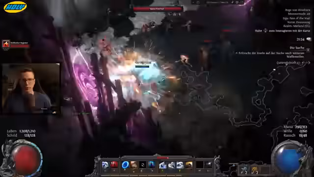 04:20:53Nach langem Suchen findet der Streamer Nawalis Rast enttäuschend als kleine Rune. Er erkennt einen permanenten Mana-Bonus, der optisch nicht erkennbar war, und ist zufrieden mit dem Paladin-Test. Er kündigt weitere Builds an und bestätigt den Controller-Switch für die nächste Liga, der in Update 0.3 versprochen, aber verschoben wurde.