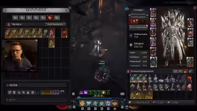 02:44:10Um 21 Uhr plant der Streamer den Wechsel zu Path of Exile 2 (PoE 2). Er analysiert aktuelle Paladin-Builds und bemerkt, dass durch einen Paragon-Knoten-Bug alle Builds Qual 4 schaffen, wodurch Bewertungen (z.B. A-Tier für Richturteil) infrage gestellt werden. Er diskutiert Moloch-Fertigkeiten wie Schildhieb und ihre Synergien mit Aspekten (z.B. Eid des Molochs). Ziel ist ein neuer Smiter-Build, der auf Blocken und Schildbasierter Mechaniken setzt.