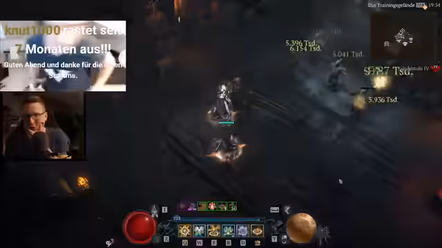 05:34:12Der Streamer kämpft gegen einen immunen Boss, der nicht eingefriert und hohe physische Resistenzen hat. Er diskutiert Deadeye-Nerfs aus vergangenen Ligen und Ressourcen-Capping-Änderungen. Nach dem Finden eines Wegpunkts beendet er den Stream und kündigt morgige Videos an: Weiterbau am 'Lichtbogen-Bild' und ein Season-KC-Video. Er bestätigt parallel Diablo-4- und PoE-2-Spielpläne.