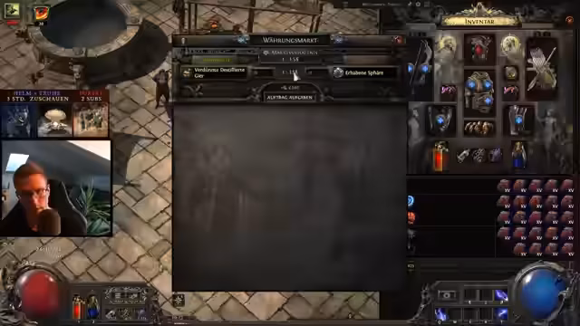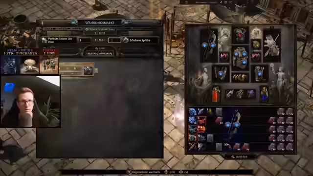 00:28:50Es wird erklärt, dass die mehr Rare-Monster bei den meisten Layouts nicht funktionieren und es wird von Budgetverschwendung gesprochen. Es wird eine Information geteilt, dass mit STRG-Shift-Klick Zuweisungen ignoriert werden können. Die Player-Rarity wird als sehr hoch bezeichnet. Es wird der aktuelle Wissensstand geteilt, dass die Rarity auf Wegsteinen multiplikativ mit der Rarity auf dem Gear berechnet wird. Der Ritus der Passage wurde für 117 Divine geholt, was die Geschwindigkeit erhöht. Es wird nach der Rune des Bogenschießens gesucht und erklärt, dass diese plus ein Pfeil, also ein Projektil gibt. Das Inventar ist voll und es wird über die Platzprobleme durch Zweihandwaffen gesprochen. Es wird von einem Antvarius Fund berichtet, der aber aufgrund schlechter Rolls nicht viel wert ist. Der Antwarius wird für 64 Ex zum Verkauf angeboten. Es wird überlegt, Delirium für eine Premium-Map zu kaufen, um die Seltenheit zu erhöhen. Es wird das Wegstein-Craften auf der Konsole kritisiert und der Aufwand dafür hervorgehoben. Es wird über eine neue Scam-Methode mit Sphären der Annullierung gesprochen, bei der die Handelswebsite hinterherhinkt und Leute dies ausnutzen, um Profit zu machen.