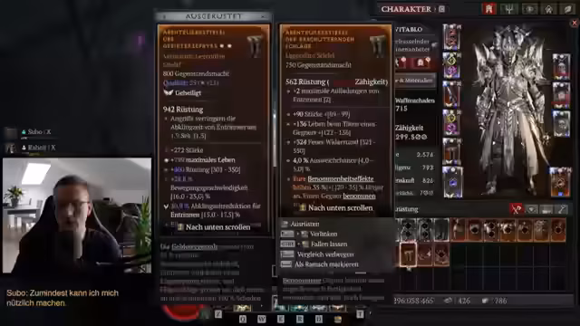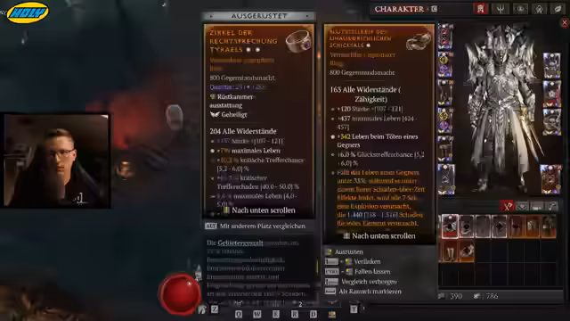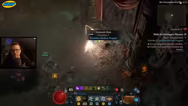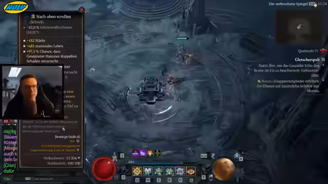 00:15:24Der Streamer stellt seinen aktuellen Paladin vor und teilt mit, dass sein Ziel für den Stream der Bau eines Flügelschlag-Builds ist. Er erwähnt einen成功reichen 100er-Gruben-Run (2:09 Minuten) und betont, dass dafür ein spezifisches Amulett benötigt wird. Gleichzeitig kritisiert er die unvollständigen Online-Listen für Unique-Drops (z.B. D4-Bits, Maxroll), die wichtige Items wie den Ring 'Silberschleier' fehlen lassen. Trotz dieser Unklarheiten plant er, das Amulett 'Sanktis von Ketamar' von Lord Sear zu farmen, auch ohne perfekten Roll.