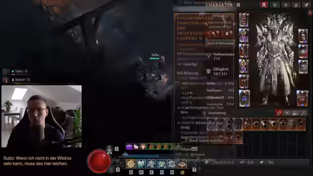 01:41:44Die Diskussion über die Drop-Orte von Griswold (Chris Woltz) intensiviert sich. Nach mehreren Runs wird bestätigt, dass das Schwert nicht nur bei Duriel, sondern auch beim Boten des Hasses droppen kann. Der Streamer hat das Schwert bereits nach einem Run beim Boten gefunden und dokumentiert dies als signifikante Entdeckung. Trotz großer Loot-Pools bei Duriel und der schwierigen Dropsituation durch eingeschränkte Item-Auswahl bleibt die Bestätigung bestehen, dass beide Bosse das gewünschte Unique liefern können.