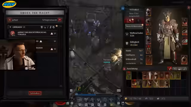 05:19:11Der Streamer findet legendäre Items, darunter ein Amulett mit Leben, Crit Chance und dem benötigten Aspekt. Er erklärt die Fähigkeit 'Gebietergestalt', deren Schaden stapelbar ist, die aber im aktuellen Build noch nicht permanent aufrechterhalten werden kann. Die Effektivität der 'grausigen Gaben' wird für das Leveln hervorgehoben und es wird über den Trödel-Modus gesprochen, um spezifische Items zu erhalten.