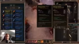 02:04:08Der Streamer beginnt mit der Umstellung des Charakters auf physischen Schaden. Er verteilt die Attribute neu, wobei er Fitness statt Knowledge skillt, und passt die Skills an. Bei den Items tauscht er viele aus, die Giftschaden oder Knowledge benötigen. Er stellt fest, dass nur wenige Items wie der Bogen und der linke Ring behalten werden können. Er sucht nach neuen Items mit physischem Schaden und passenden Affixen. Gleichzeitig muss er genug Gold ansammeln, da das Neubeschwören von Bossen und das Umskillen der Attribute und Skills teuer sind.