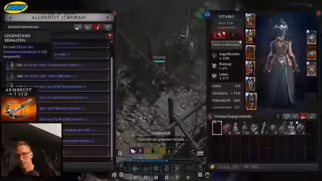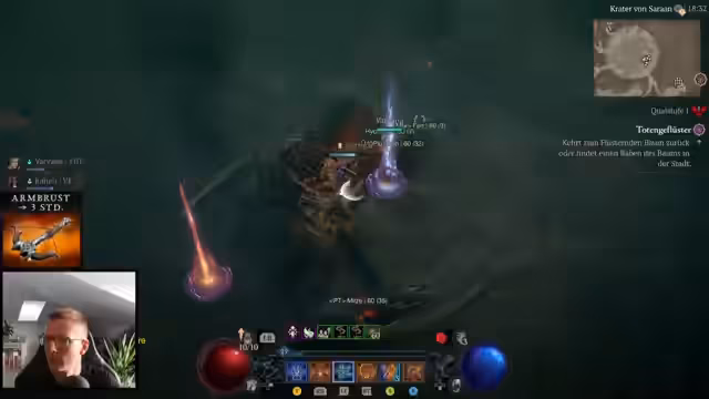 02:45:07Der Streamer konzentriert sich auf die praktische Umsetzung seines Farming-Plans. Er nutzt mehrere Methoden: Tribute für Bossmaterialien, das Farmen von Nightmare Dungeons und das Töten von Weltbossen, um an die benötigten Mats für die Amulette zu gelangen. Das Gameplay in den Dungeons beschreibt er als deutlich besser als auf dem PTR. Die Jagd nach dem speziellen Hydra-Amulett treibt den Fortschritt und schafft ein klares Ziel. Parallel diskutiert er die optimalen Builds für Klassen wie Hydra Zauberin und Druide.