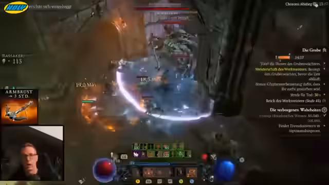 00:16:54Der Streamer realisiert, dass er in der ersten Grube zu hoch gestartet ist, was zu Problemen führte. Er korrigiert dies und stellt klar, dass für Qual 1 nur eine 10er Grube benötigt wird, während die 25er Grube bereits Qual 2 entspricht. Er entspannt sich, indem er zunächst Paragon-Level sammelt. Anschließend analysiert er seine Ausrüstung, insbesondere einen 2-GA-Beinschutz, der sich als potenziell nützlich erweist, auch wenn er am Ende einen Unique-Beinschutzen tragen wird. Er überlegt, den Beinschutz zu nehmen und ein Affix durch Rüstung zu ersetzen, was jedoch fehlschlägt.