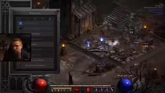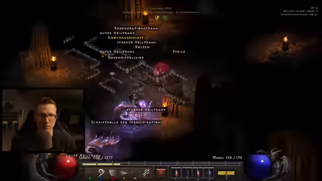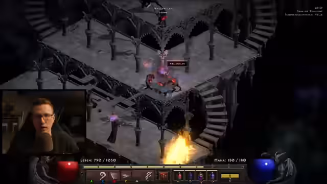 02:53:54Nachdem der Streamer den Isol-Eingang gefunden hat, beschließt er, seine Skillpunkte zu optimieren und wechselt von dem Magie-Schaden-Skill zu den Synergien von "Verzehren". Er kämpft sich durch die Gegner und tankt Schaden, um seine Lebens- und Manatränke aufzufüllen. Anschließend begibt er sich zum Schmied, auf den er sich sehr gespannt zeigt, da jeder Rune von Ghul bis El gleich wahrscheinlich droppt. Er hofft auf eine nützliche Rune, um ein Runenwort wie "Einsicht" zu bauen.