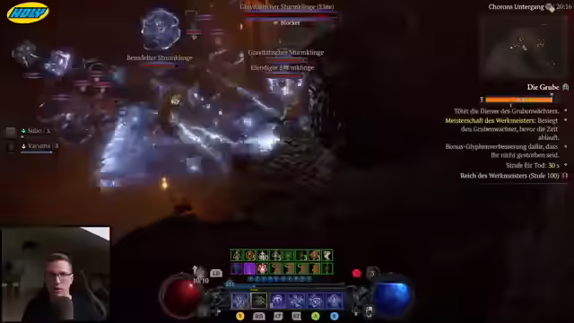 02:55:07Beim Speed Build soll ein Zauberstab drin gelassen werden, da die Animation schneller ist. Nur beim Grube Build wird ein Streitkolben reingenommen. Es wird sich dafür bedankt, dass PC Gamer den Hinweis gegeben hat. Es wird festgestellt, dass das ganze Aether verpasst wird. Es wird festgestellt, dass es eine Scheiße ist, dass die Goblins und die Chaoswelle gleichzeitig kommen. Es wird festgestellt, dass eine 20 erreicht wird. Es wird erklärt, dass wenn man mehr Attack Speed hat, würde man auch mal über die 20 drüber kommen. Es wird erklärt, dass es besser ist den Streitkolben zu nehmen. Es wird erklärt, dass es 5 bis 10% Damage ausmacht. Es wird erklärt, dass der Staple Oculus sehr schlecht ist. Es wird erklärt, dass der rostige Siegelring von X-Fall überarbeitet werden müsste. Es wird erklärt, dass es bei den mythischen aufgepasst werden muss, dass sie nicht zu gut werden.