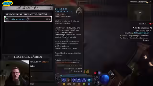 04:21:16Die Zuschauer haben mehrheitlich für einen sofortigen Umbau auf den Feuerball-Build gestimmt. Es wird über den Wert eines Azurit-Rings mit Lightning, CR und Convulsions diskutiert, wobei die Preise stark schwanken. Der Streamer sammelt sich kurz, um den Umbau mit der Rüstkammer nicht zu verwechseln. Alte Hydra-Items werden gelöscht. Es wird erklärt, dass Crit und Überwältigung auf Waffen nicht gleichzeitig möglich sind, sondern Schaden benötigt wird. Es wird gehofft, dass Zuschauer nicht versuchen, die ersten drei Werte des Guides zu rollen, da dies zu hohen Goldkosten führen könnte.