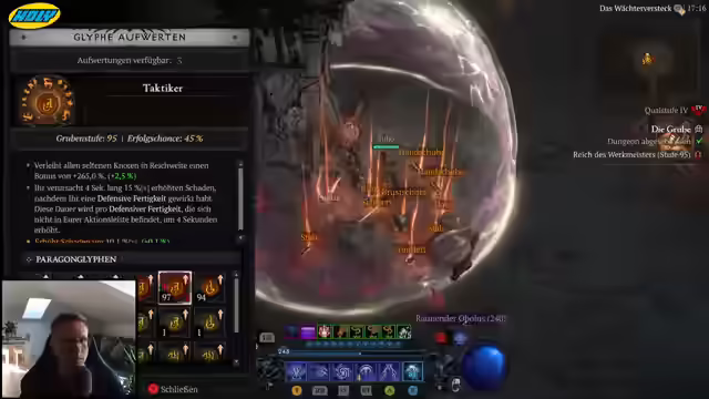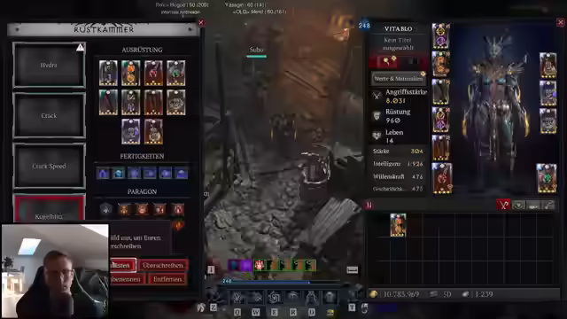 Der Streamer stellt seinen Kugelblitz-Build in Diablo IV vor, optimiert für ein YouTube-Video. Durch den Aspekt, der Teleport ersetzt, ist der Build wieder mit Controller spielbar. Er farmt Items für einen Feuerball-Build und diskutiert Leaderboard-Platzierungen. Der Fokus liegt auf Goldbeschaffung und der Suche nach dem Stab des endlosen Zorns. Probleme mit Defensive und Mana Schild werden analysiert, bevor der Umbau auf den Feuerball-Build vorbereitet wird.
