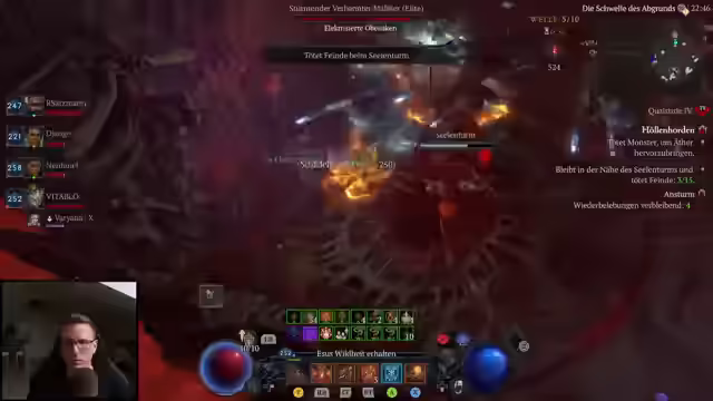 05:56:29Es wird überlegt, ob sich der Höllenregen in Welle 5 noch gelohnt hätte, aber verworfen, stattdessen wird die Etherscheusalle als gute Wahl angesehen. Bedauert wird, dass in der vorherigen Runde nicht die Seelentürme gewählt wurden, da dies jetzt mehr Äther gebracht hätte. Es wird festgestellt, dass vor Qual 3 Chaos-Ressourcen nicht wirklich farmbar sind, aber Qual 3 für die meisten Builds relativ einfach zu erreichen ist. Der Streamer kündigt an, dass er den Stream heute nicht bis nach 0 Uhr durchziehen wird, da die meisten am nächsten Tag arbeiten müssen. Es wird über Urlaubspläne für Diablo diskutiert, wobei einige Zuschauer Urlaub für Season 10 oder das Add-on nehmen. Abschließend wird über die Chaosrüstung in der nächsten Season spekuliert und die Idee geäußert, dass sie in irgendeiner Form erhalten bleiben sollte.