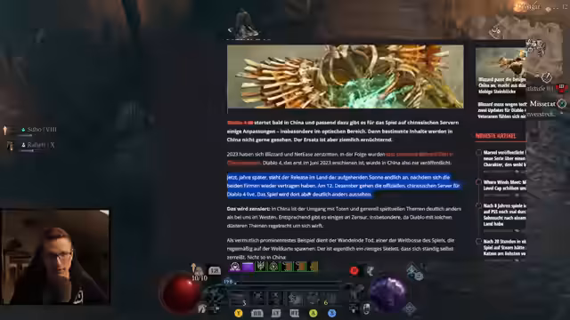 02:47:45Im Jahr 2026 wird Diablo 4 ein großes Jahr erleben, insbesondere durch den bevorstehenden Release in China am 12. Dezember. Nach einem Streit zwischen Blizzard und NetEase im Jahr 2023, der zur Sperrung aller Blizzard-Titel in China führte, haben sich die Firmen nun wieder geeinigt. Diablo 4, welches bisher nie in China veröffentlicht wurde, wird dort mit deutlichen Anpassungen erscheinen. Dies wird als die wichtigste Schlagzeile für Diablo 4 seit Langem betrachtet, da China ein enormes Potenzial für Einnahmen in solchen Spielen bietet und die Zukunft von Diablo 4 für mehrere Jahre sichern könnte. Die zusätzlichen Ressourcen, die durch diesen Release generiert werden, könnten zu mehr Content führen, ähnlich wie es bei Diablo Immortal der Fall ist, das in China aggressiver monetarisiert wird. Es wird erwartet, dass Blizzard von diesem Schritt extrem profitieren wird, was wiederum mehr Investitionen in das Spiel und neuen Content für alle Spieler bedeuten könnte. Aktuell werden chinesische Spieler, die über VPN auf westlichen Servern spielen, gebannt, um den lokalen Release vorzubereiten. Es wird vermutet, dass dies auch der Grund für die jüngsten Verbesserungen und die erhöhte Mühe bei der Entwicklung von Diablo 4 sein könnte, um das Spiel für den China-Release vorzubereiten.