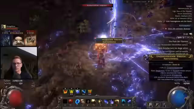 03:33:48Der Streamer widmete sich dem Bau von Türmen mit speziellen Tabletts, um Monsterdichte und Riss-Drops zu maximieren. Die Funktionsweise des Lootfilters wurde erläutert, wobei neue Eigenschaften wie das Hervorheben außergewöhnlicher Bases in Türkis erwähnt wurden. Der Kampf gegen den Titan-Boss wurde als schwierig für den Dead-Eye-Build beschrieben, da die Blitzrouten nicht treffen. Es wurde auch über das Ersetzen von Ring und Handschuhen gesprochen, um den Damage zu steigern.