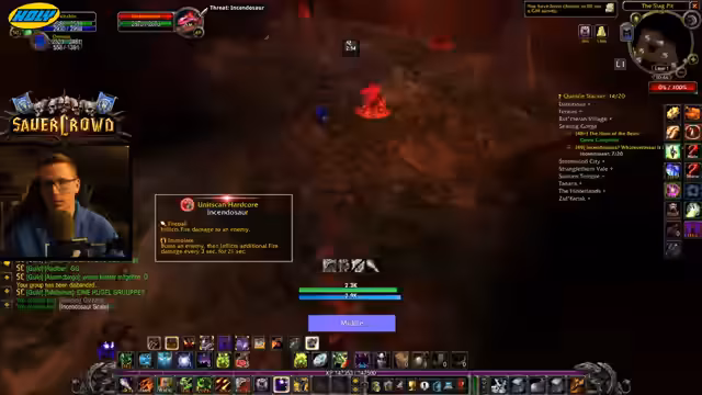 05:36:37Zu Beginn des Streams untersucht der Moderator die Lava‑Spawns im Searing Gorge, weil dort ein hoher Drop‑Rate für das Item Heart of Flame erwartet wird. Er erklärt, dass er gezielt nach den Lava‑Spinnen sucht, deren Drop‑Rate besonders hoch ist, und berichtet, dass er bereits mehrere forsøcht hat, das Item zu erhalten. Gleichzeitig bemerkt er, dass sein Haustier im Kampf gestorben ist und er deshalb seine Route anpasst, um sicherer zu farmen.