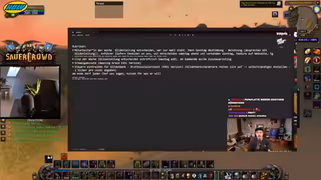 00:15:43Der Stream eröffnet mit einer lockeren Begrüßung und einem kurzen Hinweis auf ein kürzlich abgehaltenes Gilden‑Krisen‑Meeting, das von vielen Zuschauern als bedrohlich empfunden wurde. Es wird kritisch analysiert, dass die Gildenleitung scheinbar wenig Motivation mehr für das bevorstehende Event hat und lediglich versucht, das aktuelle Vorhaben so schnell wie möglich abzuschließen. Der Sprecher betont, dass dieses Vorgehen nicht nur die Stimmung der Community, sondern auch die Qualität des geplanten Raids beeinträchtigen könnte, weil motivierte Teilnehmer fehlen und das Projekt Gefahr läuft, ohne ausreichende Vorbereitung zu starten.