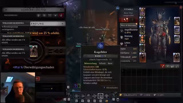 06:43:05Nachdem der fundamentale Durchbruch erzielt wurde, beginnt eine Phase der detaillierten Build-Optimierung. Der Streamer rüstet den Kugelblitz-Fokus aus und testet verschiedene Glyphen wie 'Entfesseln' und 'Geübt'. Gleichzeitig wird ein System zum Farmen von Runen und Glyphen aufgebaut, wobei das Legion Event als Quelle für Seelen genutzt wird und der Speed-Build als effektive Methode zum Leveln dient.