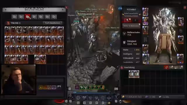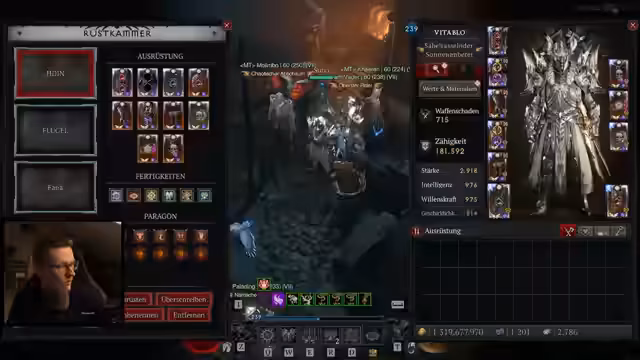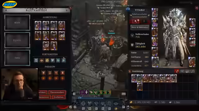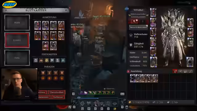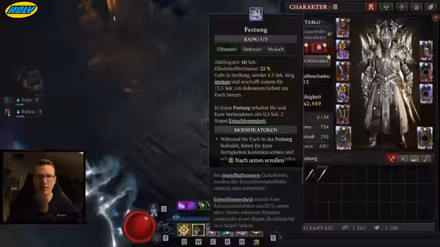 03:03:44Die aktuelle Charakterkonfiguration wird hinsichtlich der Defensive kritisch hinterfragt, wobei insbesondere die Nutzung von Räucherwerk für zusätzliche 750 Lebenspunkte gegen einen geringen Rüstungsverlust abgewogen wird. Es zeigt sich, dass bestimmte Builds wie Feuereifer aufgrund mangelnder Zähigkeit für Gelegenheitsspieler kaum spielbar sind, da sie in höheren Schwierigkeitsgraden wie der Grube zu oft sterben. Ein Hauptproblem liegt in der Ausrüstung, wenn Schilde lediglich offensive Werte, aber keine Schadensreduktion oder Lebenspunkte bieten.