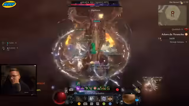 01:31:24Der Streamer testet den Richter-Paladin-Build in der Praxis und stellt fest, dass der Speer nicht die erhoffte instantane Explosion der Richturteile auslöst. Vielmehr entsteht eine automatische Verteilung von Richturteilen durch Flügelschläge, wodurch der Speer-Cooldown deutlich reduziert wird. Der Build erweist sich als mehr Speedfarming-tauglich als erwartet, besonders auf höheren Gruben-Stufen, wo das Gegner-Zusammenziehen relevant wird. Allerdings fehlt dem Build der Damage-Boost durch Gebieter, was durch den Aspekt der Festung ausgeglichen werden könnte.