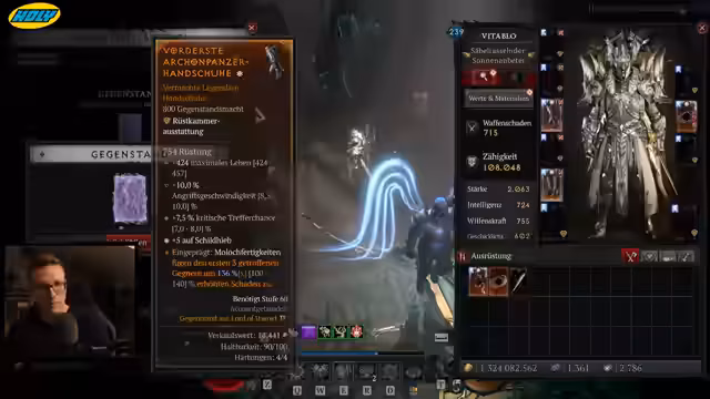 00:34:34Beginn der Item-Suche für den Richter-Paladin-Build. Der Streamer durchforstet seinen Inventarbestand und sucht nach passenden Items. Er findet bereits den Richter-Titel und einen Ring mit den benötigten Eigenschaften. Die benötigten Aspekte für den Build werden identifiziert: Richturteile können explodieren, verursachen erhöhten Schaden und machen Gegner verwundbar. Da nicht alle Gegner verwanbar werden, wird eine alternative Tafel in Betracht gezogen. Der Streamer stellt fest, dass der Build derzeit für Speedfarming ungeeignet scheint, da es auf den Cooldown des Speers ankommt.