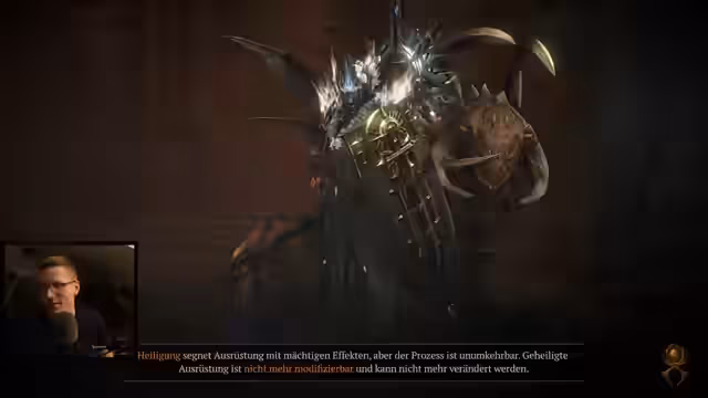 03:33:15Der Streamer beginnt aktiv mit dem Aufbau des Shield-Bash-Builds. Er wählt Aspekte mit Double Damage und Stärke, da diese am stärksten sind. Er plant, Griswold einzubauen und überlegt, welche Items geheiligt werden sollten. Er stellt fest, dass dieser Build wieder die Gebieterform verwenden wird, da diese zu stark ist.