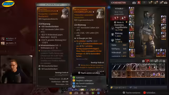 01:16:07Das Kompass-Event ist live, und der Streamer beginnt, Höllenhorden-Arenen zu farmen, um die erhöhte Drop-Rate für Kompasse zu testen. Er äußert seine Freude über den ersten gefundenen Kompass. Währenddessen diskutiert er über die Suche nach spezifischen Unique-Items für seinen geplanten Pfeilhagel-Build, darunter Botschaft Harkans, Bestienfallstiefel, Fäuste des Schicksals und Krone von Lucian. Er stellt fest, dass Botschaft Harkans als Chaos-Item droppen kann, während die Bestienfallstiefel bei der Eisbestie gefarmt werden müssen. Er erwähnt, dass er die Zauberin mit knisternder Energie in Season 11 spielen möchte, da dieser Build im PTR am meisten Spaß gemacht hat und voraussichtlich einer der stärksten sein wird. Er findet einen Ring der Sternlosen Himmel, den er für den Pfeilhagel-Build nutzen könnte, aber ihm fehlen die nötigen Runen, um dessen volles Potenzial auszuschöpfen. Trotzdem ist er froh über den Fund in Hardcore und legt ihn in die Truhe. Er erwähnt, dass er bereits über 100 Millionen Gold für das Verzaubern von Ringen ausgegeben hat, ohne die gewünschte Eigenschaft zu erhalten, was die Herausforderungen im (Solo Self-Found) Modus verdeutlicht.