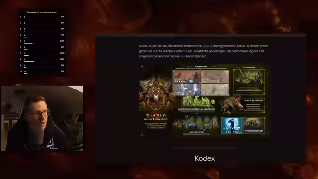 00:15:12Der Streamer begrüßt sein Publikum und testet das Poll-Tool, das am Vortag ausgefallen war. Er erläutert das Konzept des Season Rankings, ein Format, in dem alle Diablo 4 Seasons von 0 bis 10 bewertet werden, um ein abschließendes Ranking zu erstellen. Während er auf den Start des Kompass-Events um 19 Uhr wartet, spielt er seinen Hardcore-Charakter weiter. Er erwähnt, dass die Drop-Rate für Kompasse mit dem Event erhöht wird, weshalb es keinen Sinn macht, diese vorher zu farmen. Stattdessen konzentriert er sich auf Gruben-Farming, obwohl dies ebenfalls nur begrenzt nützlich ist, da er die Gruben nicht wesentlich weiter leveln kann, ohne in Qual 4 zu gelangen. Er hofft auf positive Ankündigungen bei den Game Awards, um die Popularität von Diablo 4 zu steigern, und äußert seine Vorfreude auf das Kompass-Event.