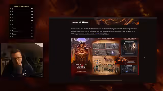00:20:57Der Streamer teilt seine anfängliche Enttäuschung über den PTR von Season 11, die sich jedoch nach Interviews und der Ankündigung des Solo Self-Found (SSF) Modus wieder in Hoffnung verwandelte. Er ist sich unsicher, ob SSF bereits in Season 11 verfügbar sein wird, da die Informationen dazu widersprüchlich sind. Er betont, dass es trotz der Ungewissheit bezüglich SSF weitere positive Neuigkeiten gab, die seine Stimmung verbesserten. Die Diskussion dreht sich auch um die Herausforderungen, die Diablo 4 mit sich bringt, insbesondere die Schwierigkeit, bestimmte Gegenstände oder Eigenschaften für Builds zu erhalten, was im SSF-Modus noch verstärkt würde. Er erwähnt, dass er derzeit unabsichtlich im SSF-Modus spielt, ohne dies als explizite Herausforderung festgelegt zu haben.