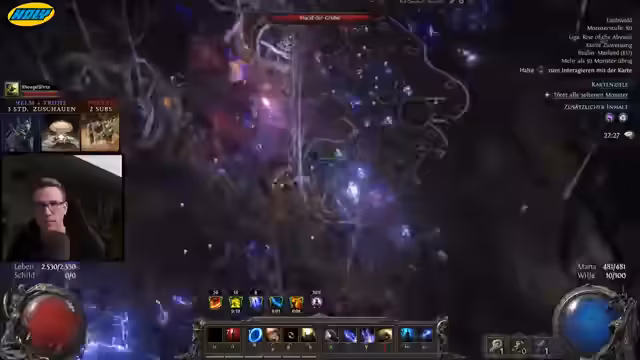 04:47:35Der Streamer spricht über die Herausforderungen des Item-Snipings während des Mappings, da man nicht schnell genug in andere Gebiete porten kann, um Angebote wahrzunehmen. Es wird kurz auf einen Grafikfehler und Epilepsie-Gefahr hingewiesen. Nach dem Amulett-Trade wird eine Diskussion über das Joinen von Gruppen geführt. Der Streamer beendet einen Riss und Abgrund, wobei der unterkühlte Boden als besonders gefährlich hervorgehoben wird. Ein Zuhörer fragt nach dem NPC Dunning, der für Expeditionen zuständig ist und im Hideout platziert werden kann. Der Streamer setzt das Crafting fort und entscheidet sich für einen Exalted Orb Slam auf die Rüstung, um Triple Resi zu erhalten. Er erklärt seine Crafting-Methode, die er auch gestern erfolgreich angewendet hat, und hofft auf Glück. Es wird über die Kosten und Risiken verschiedener Exalted Orbs gesprochen. Der Streamer nimmt einen mittleren Exalted Orb und erzielt keinen guten Ausweichwert, was als unglücklich bezeichnet wird, aber aufgrund des Budget-Craftings akzeptabel ist.