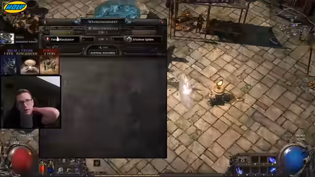 02:59:59Auf der Suche nach einem besseren Amulett stößt der Streamer auf eine Gold-Version, die besonders gute Werte hat, inklusive Kälteresistenz, was ihm Flexibilität gibt. Es wird diskutiert, ob es Amulette mit Ausweichwert oder doppeltem Magic Find gibt. Nach längerem Suchen und Abwägen entscheidet er sich, sich zwei Runen des Bogenschießens gönnen zu wollen. Diese kosten zusammen 26 Exalted Orbs und sollen den Schaden seines Bogens erhöhen, obwohl der Basis-Schaden dadurch sinkt.