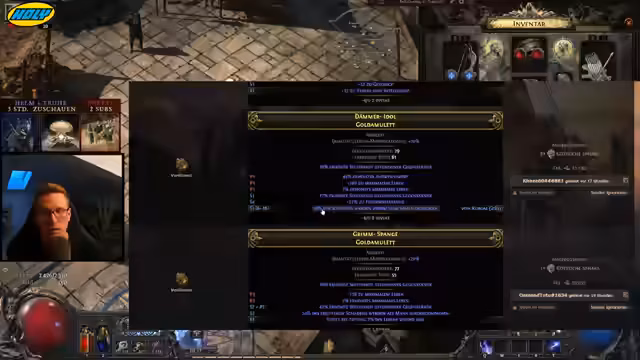 05:07:23Ein Zuschauer meldet Spam im Discord, woraufhin der Streamer den Spammer sofort bannt. Er erklärt, dass solche Spam-Bots oft gehackte Accounts sind und schnell entfernt werden müssen. Anschließend wird festgestellt, dass die Live-Suche wieder funktioniert. Der Streamer farmt weiter Maps und kommentiert dabei gefundene Items und deren Wert. Er erwähnt, dass es sehr früh im Spiel gute Drops geben kann. Es wird über einen gehackten Social-Media-Account von Arte und Krypto-Scams gesprochen, was den Streamer sehr beunruhigt. Er vermutet, dass die Live-Suche zwischenzeitlich defekt war, da sie plötzlich wieder sehr aktiv ist. Der Streamer stellt fest, dass er fast Level 97 erreicht hat und auf dem richtigen Weg ist. Er erklärt, dass er ein Amulett mit guten Widerständen benötigt, um einen Headhunter spielen zu können, was sein letztes Projekt ist. Trotz intensiver Suche konnte er kein Amulett finden, das alle seine Anforderungen erfüllt.