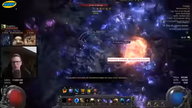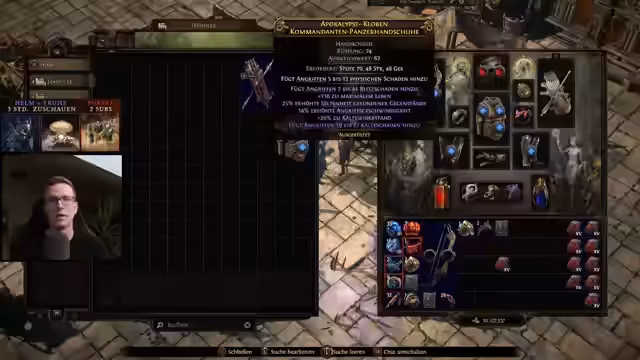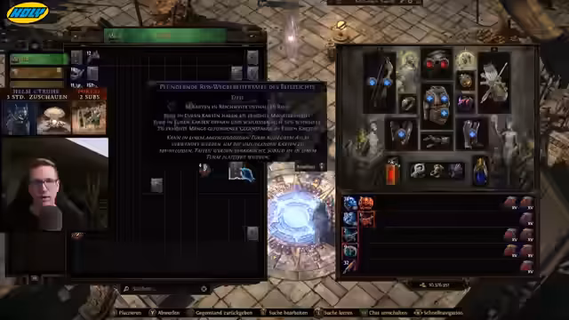 Der Stream konzentriert sich auf Path of Exile 2. Es werden Lootfilter angepasst, neue Items wie Schuhe und Amulette erworben und kosmetische Gegenstände ausprobiert. Glücksspiel-Elemente, der Kauf von Supporter-Packs, Fertigkeiten-Effekte und die Ergebnisse von Crafting-Versuchen werden thematisiert. Es geht um die Optimierung des Charakters und die Suche nach passenden Items.