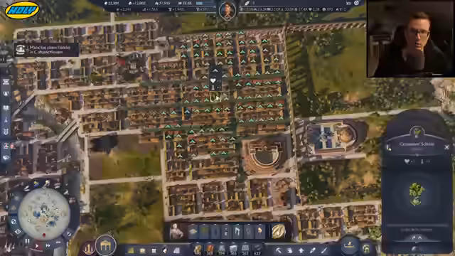 03:10:05Nachdem die Goldproduktion gesichert ist, konzentriert sich der Streamer auf die Herstellung von Halsketten und die Optimierung der Juwelier-Produktion. Es werden zusätzliche Goldschmieden und Juweliere gebaut, um den Bedarf zu decken. Dabei treten jedoch Probleme mit der Platzierung der Gebäude auf, da einige Häuser aufgrund ihrer Größe oder der diagonalen Bauweise nicht perfekt ins Raster passen. Die Zufriedenheit der Bürger sinkt erneut, was auf fehlende Güter wie Togen, Umhänge und Streitwagen zurückzuführen ist. Um die Zufriedenheit zu steigern, werden Theater und Bäder in Industriegebieten gebaut, was zwar unrealistisch ist, aber die Brandsicherheit und das Wohlbefinden der Arbeiter verbessert. Es wird festgestellt, dass bestimmte Gebäude wie Juweliere und Goldschmiede einen negativen Einfluss auf die Brandsicherheit haben, was eine strategische Umplatzierung erforderlich macht. Der Streamer plant, auch die Produktion von Tuniken und Peelay zu optimieren, indem er Hanffelder und Schafzuchten erweitert. Er bemerkt, dass Liegen entgegen der Beschreibung Flax statt Schafe benötigen, was eine Anpassung der Produktionskette erfordert.
