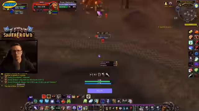 04:08:59Eine unerwartete Aggro-Mechanik wird thematisiert, bei der ein Mob, der eigentlich nicht vom Streamer angegriffen wurde, plötzlich an ihn aggro zieht. Gleichzeitig wird ein seltenes, violettes Item gefunden, ein 'Gildenbanner', das dauerhaft Feuerwiderstand für den Main Tank bietet, was für den Molten Core-Raid sehr nützlich sein könnte. Es wird darüber gesprochen, wie extrem selten solche Gegenstände normalerweise sind und dass man für den gleichen Gegenstand auf anderen Servern hunderte Runs benötigen würde.