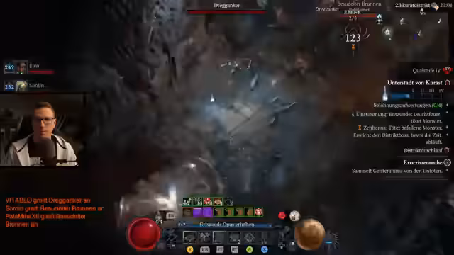 02:08:43Der Streamer beendet die Session in der Höllenhorten-Arena nach einem vollen Run, bei dem ein neuer Rekord von 2360 Äther aufgestellt wird. Er äußert, dass er nun müde ist, und gibt an, für den Abschluss noch Legion-Events und andere verbleibende Aufgaben der Saisonreise zu erledigen, um alle Paragon-Punkte zu sammeln. Ein Highlight des Runs ist der Drop eines dritten blutbefleckten Verhängnisbringers, den er direkt für den Sorc-Leveln-Prozess nutzen kann. Der Stream endet mit diesem gezielten Farming-Abschluss.