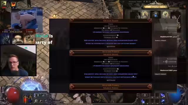 01:50:04Der Stream erklärt die Mechanik des 'Max-Einladung'-Rings. Man muss den Ring mehrmals ablehnen und neue Bosse beschwören, damit der Ring bei jedem Mal stärker wird, um am Ende einen Superboss und bessere Belohnungen zu ermöglichen. Des Weiteren wird auf die Gefahr von Delirium-Monstern in Maps hingewiesen, die aufgrund ihrer längeren Lebensdauer einen erheblichen Schaden verursachen können, besonders wenn man AFK an Truhen bleibt.