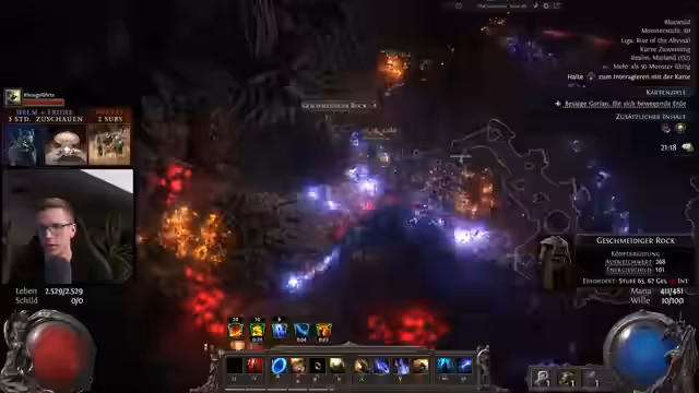 04:58:13Bei der Verwendung von Omen des Wiederaufstiegs besteht eine 33%ige Chance, eine zusätzliche implizite Eigenschaft zu erhalten oder das Item mit 1-3 Chaos-Orbs zu zerstören. Der Streamer wägt ab, ob es sich lohnt, 7 göttliche Orbs in eine Rüstung zu investieren, die er selbst tragen möchte. Er entscheidet sich für den Versuch, erleidet jedoch einen Verlust, als die Rüstung zerstört wird. Dieses Risiko verdeutlicht die Spannung zwischen potenziellem Gewinn und möglichem Verlust in Path of Exile.